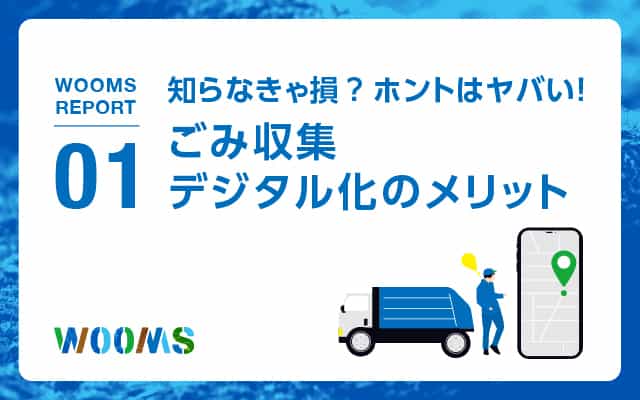 資源・廃棄物収集運搬のDXを検討されている方へ。 業務の見える化から体制・働き方の最適化までを叶える、 WOOMS Technologyの特徴や機能、導入事例をご紹介します。